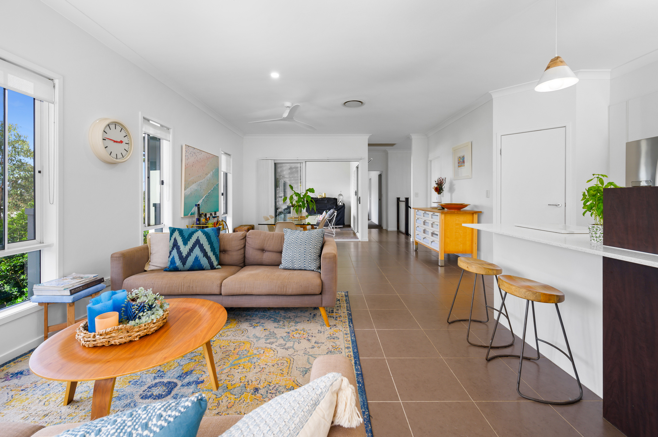 * Open plan kitchen, living, and dining area.