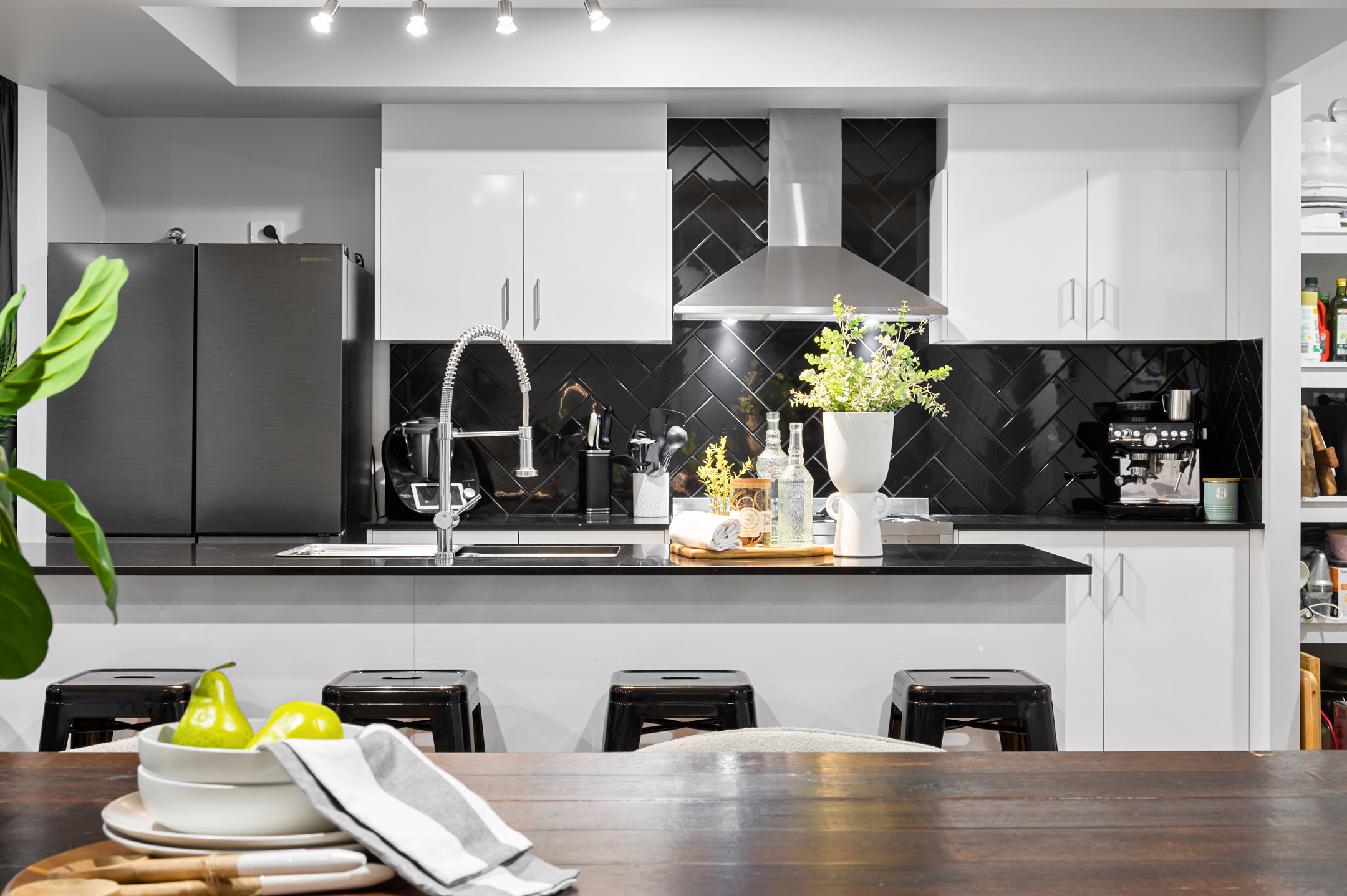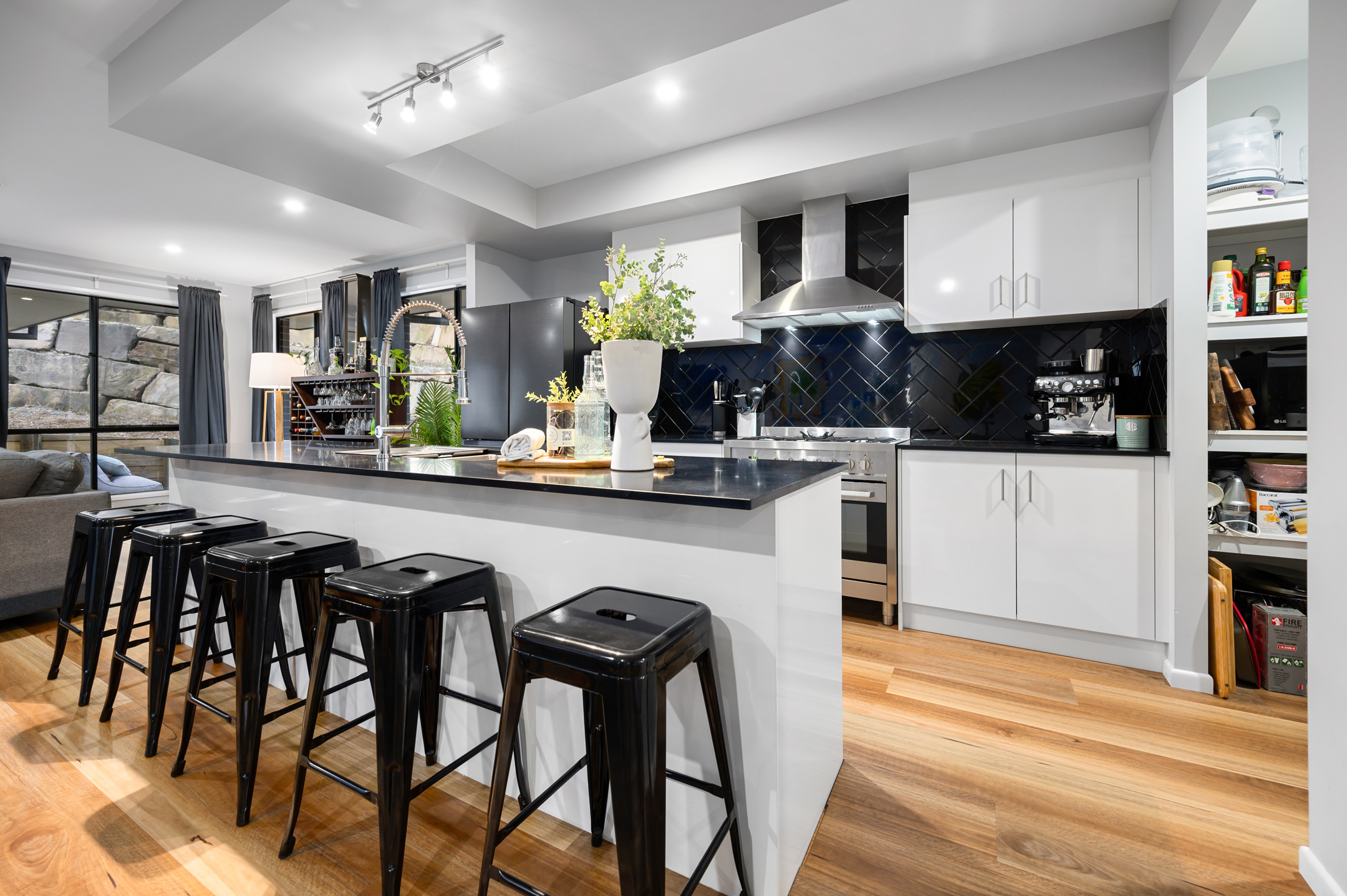 *Modern kitchen with walk in pantry and stone benchtops
