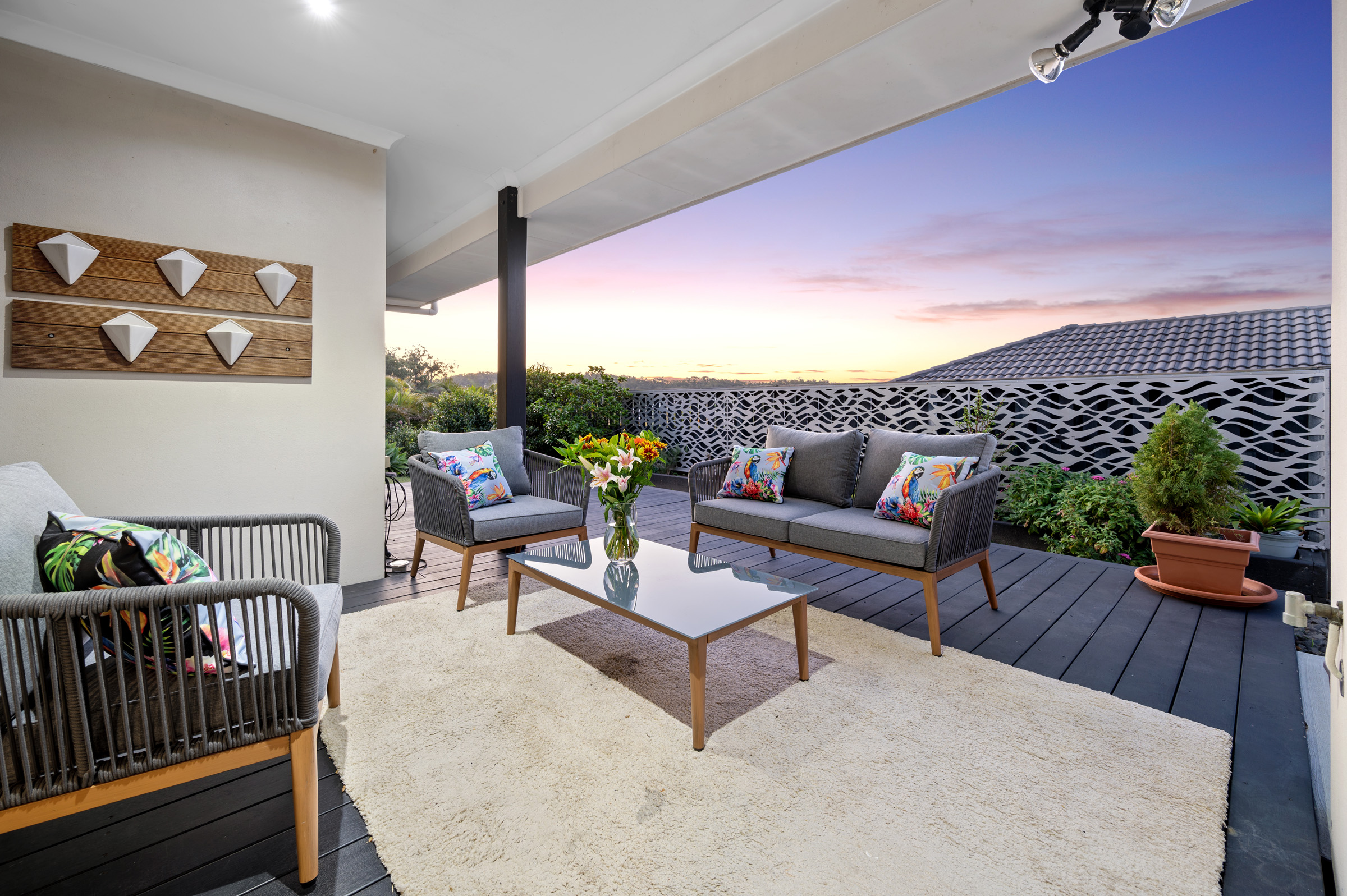 Allow us to present this quality family home, perched high on Ala Drive. This property delivers the perfect mix of low maintenance living while still offering luxury living areas. Whether you love entertaining or prefer to enjoy the peace and serenity of owning your own home, this quality Plantation home provides truly spectacular views of the sunset over the surrounding bushlands of Coomera Retreat. Features include: * Gourmet kitchen with oversized island and stone benchtops * Walk-in pantry * 3 spacious bedrooms * Plantation shutters in the front bedroom * Multiple living areas * Large entertainers deck with views * 2 Bathrooms * Master with ensuite and walk-in-robe * Covered outdoor alfresco * Ceiling fans throughout * Air conditioning * In-built sprinkler system in the front and rear gardens * Natural gas & inbuilt bayonet fitting for BBQ * Tiled throughout * 3.5 kW Solar power * Beautiful landscaping If you are looking for a beautifully presented home with nothing to do but move in and enjoy, then this is the property for you.