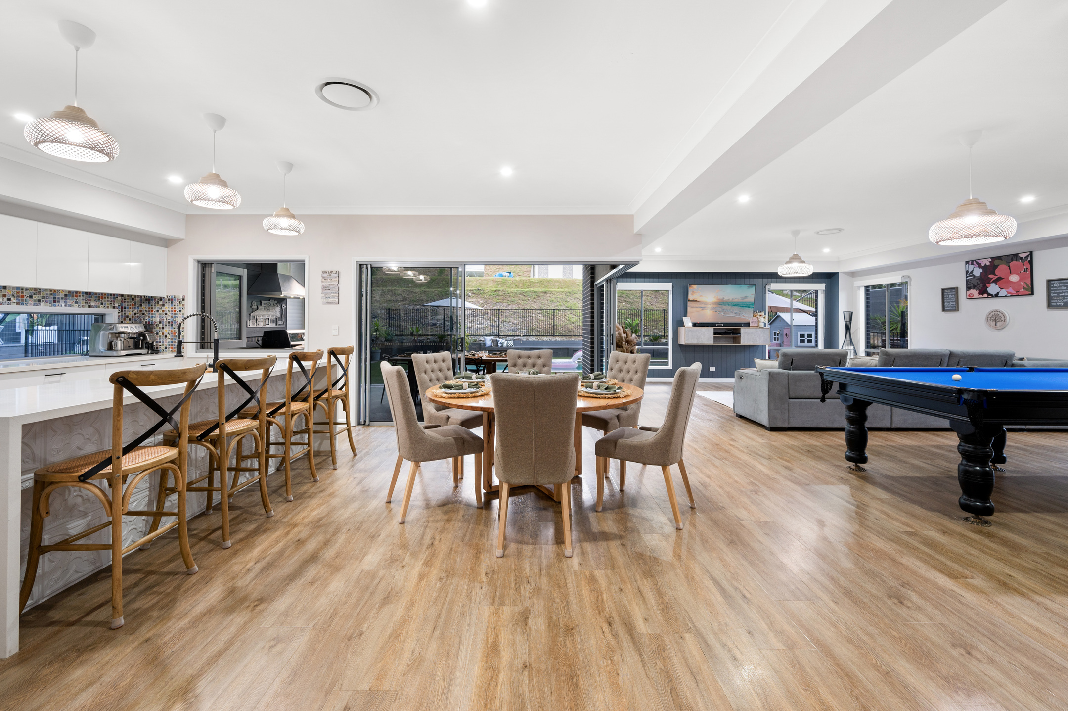- Large open plan kitchen/living/dining and rumpus, all leading out to the outdoor alfresco area.