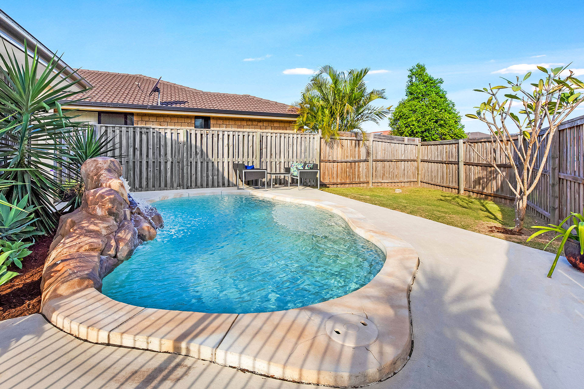 With four bedrooms, two bathrooms and a study surrounding the expansive open plan layout including the spacious kitchen and stylish living and dining area, this home is truly a first home buyers dream. Seamless flow to the outside alfresco, and a swimming pool , it’s the perfect place for entertaining all of the family and friends. Fully landscaped with low maintenance gardens, it is all ready for your family to enjoy.