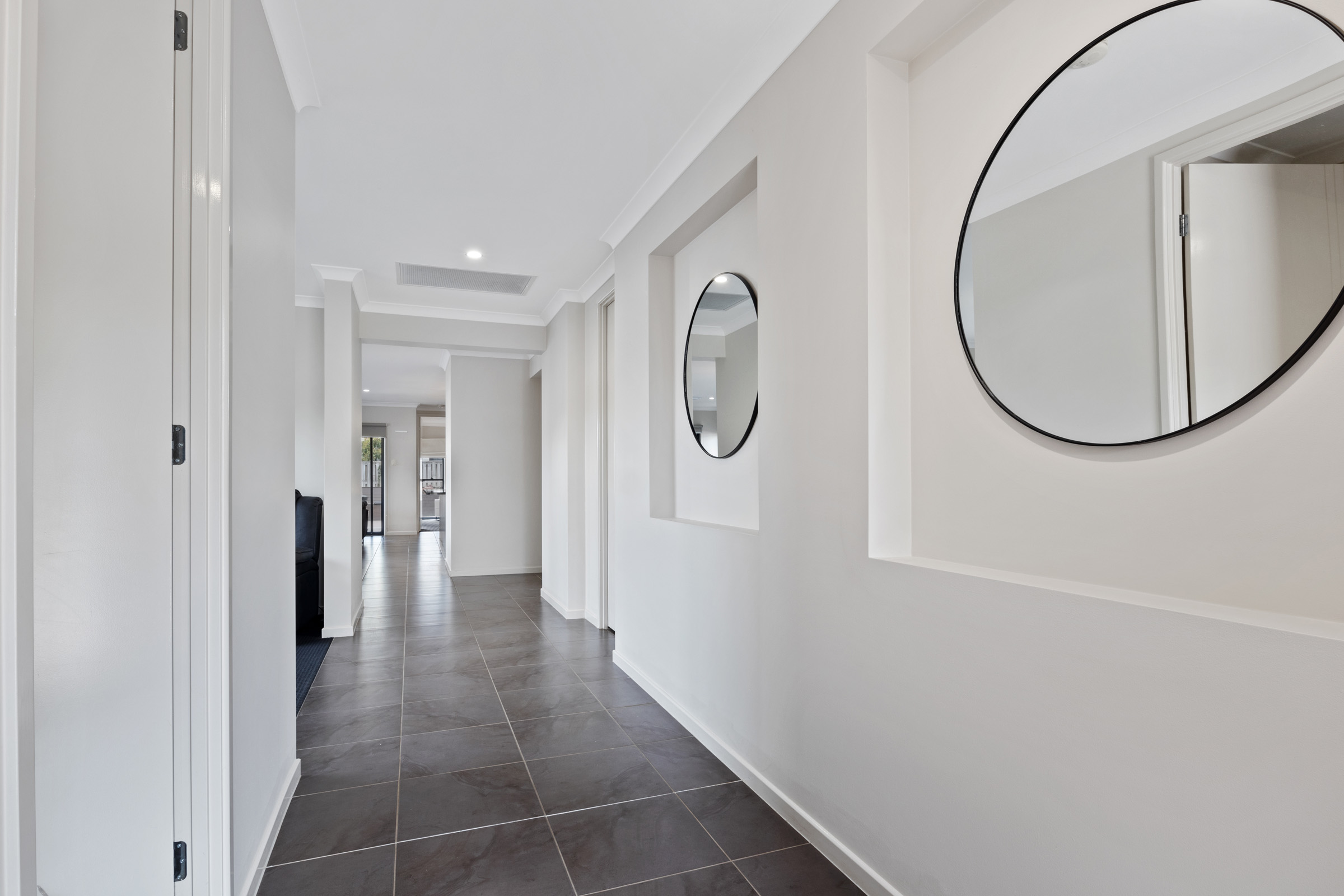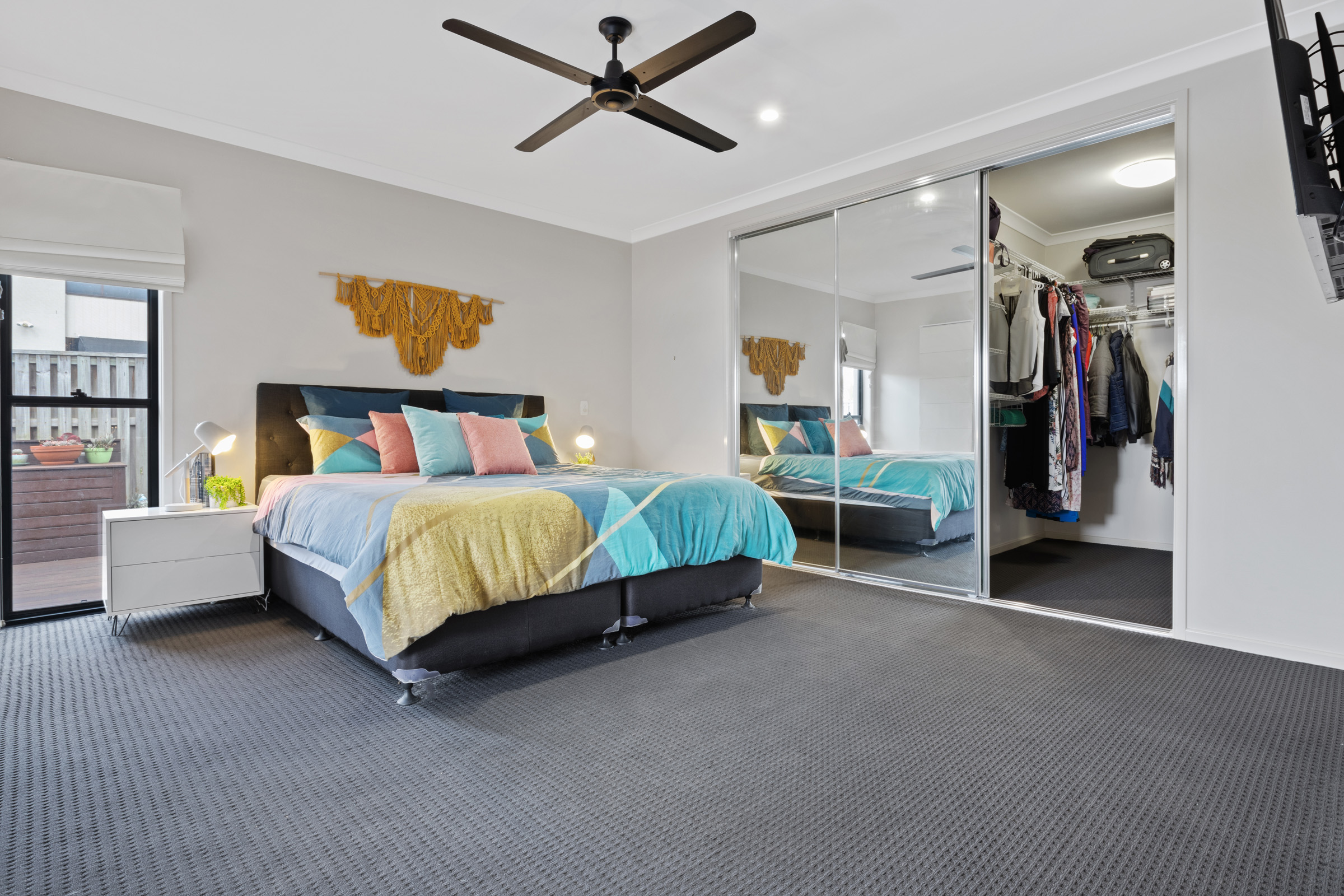 Master bedroom with ensuite and walk-in robe concealed behind large mirrored doors