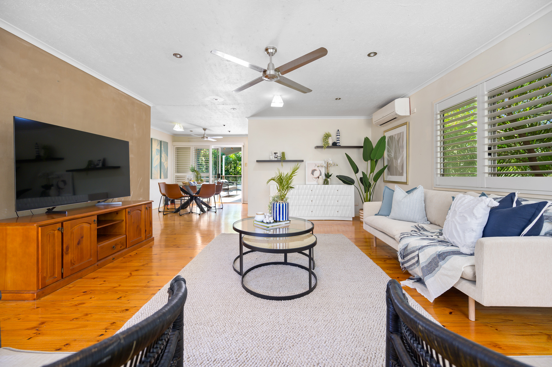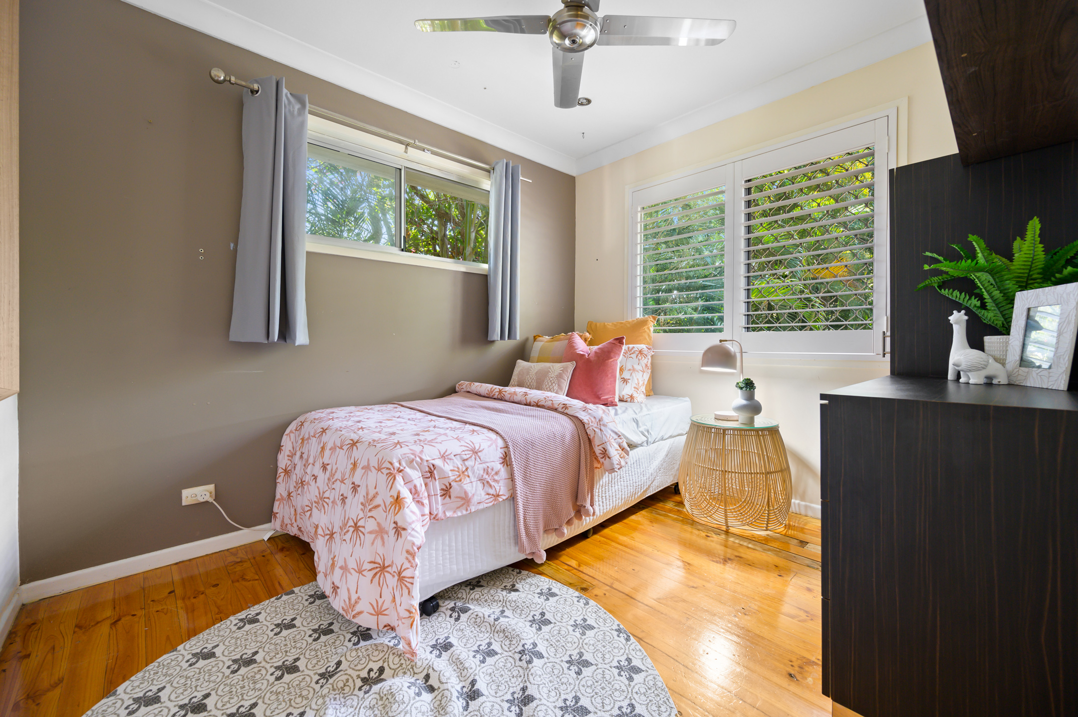 Nestled on a 620m2 flat block with well-established tropical landscaping, this 4-bedroom home is situated at the end of a col-de-sac with nature reserves situated both beside and opposite, making it private yet accessible. The functional layout provides plenty of space for the family to come together in either the spacious living room to enjoy some rest and relaxation in front of the tv or on the oversized back deck, which is the ideal spot to enjoy weekend BBQ’s and dinner under the stars. The downstairs area has been converted to accommodate a double lock up garage as well as 2 multi-purpose rooms that could be used as extra bedrooms, a home office or a designated kids retreat, with possibilities only limited by your imagination. The fully fenced block makes both the back and front yard a private and useable space that currently houses 2 garden sheds and a cute as a button cubby house which is ready for its new owners to breathe new life into.