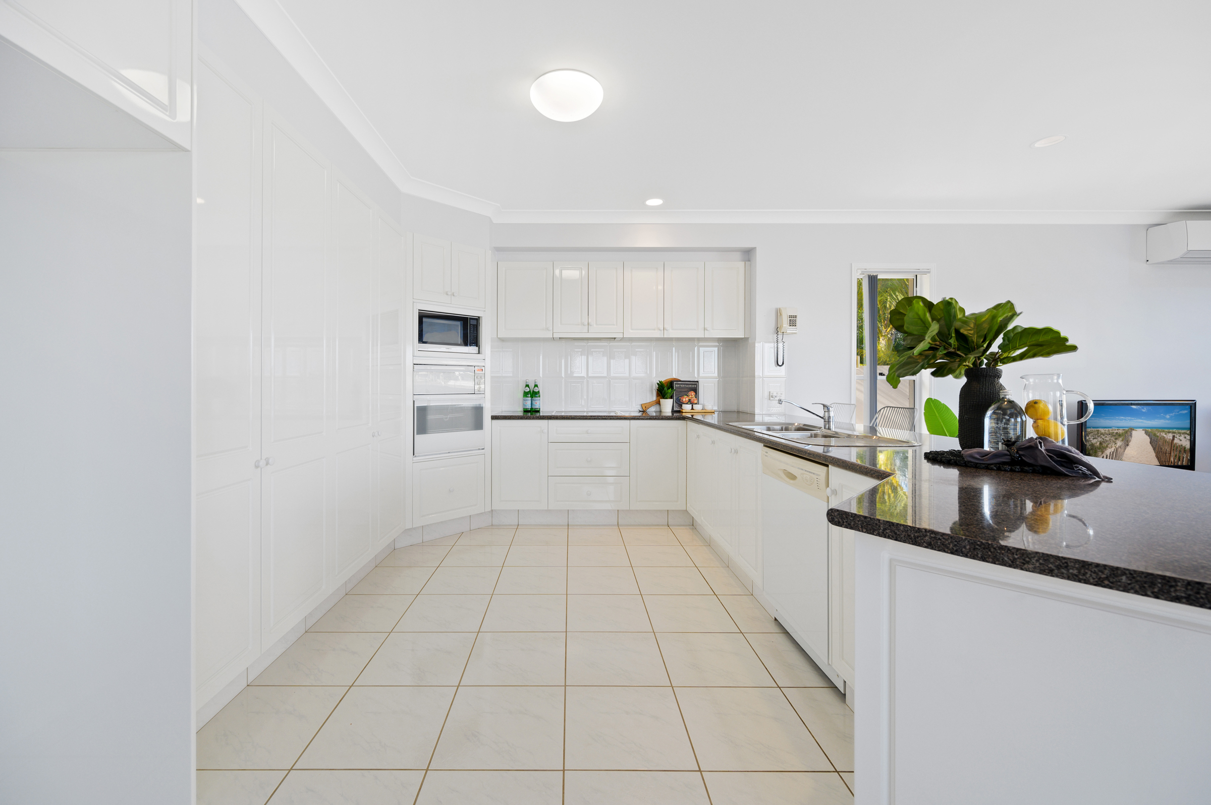As you enter you are greeted by a light-filled formal lounge with vaulted ceilings and bay windows framing your impressive water views. To the right, you have the master suite with a custom-fitted walk-in robe and an updated floor-to-ceiling tiled ensuite. To the left you are met with the spacious kitchen and open plan living/ dining room, all bathed in natural light and once again, making the most of those stunning water views.
