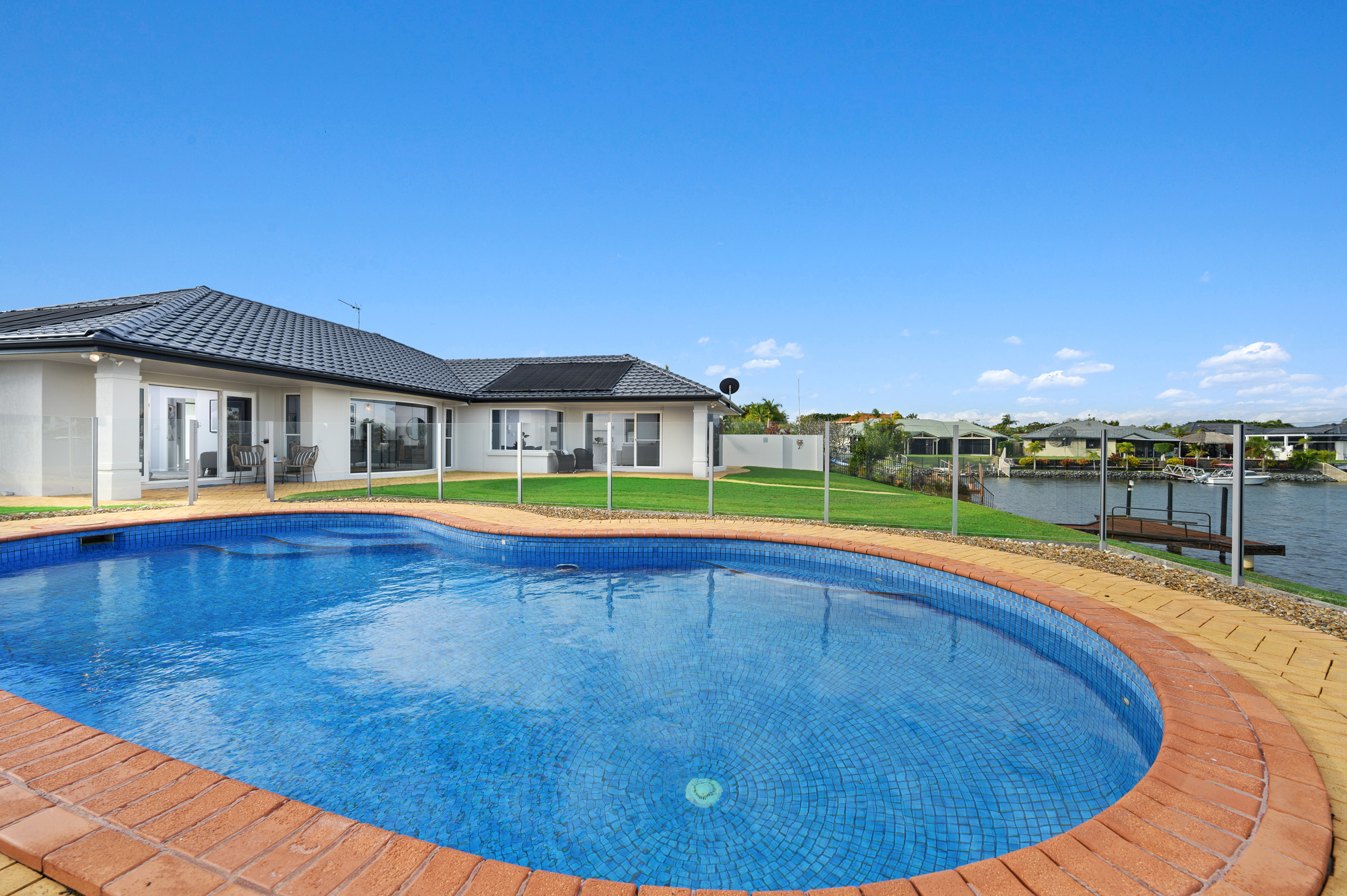 Have you been dreaming of waterfront living? Here’s an opportunity to secure an elegant family home sitting on a quarter of an acre of land with over 30m of water frontage. This superb property offers 4 bedrooms, 2 bathrooms, multiple living areas, and a pool, all situated within the exclusive gated community of Parkwater Point.