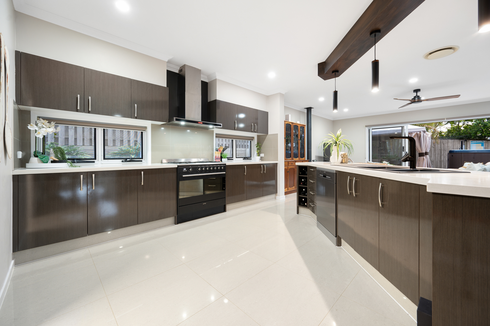 * Modern kitchen with stone benchtops